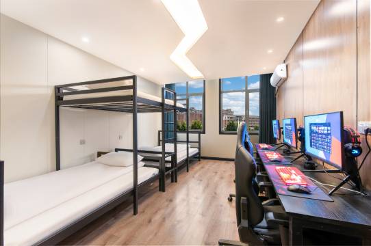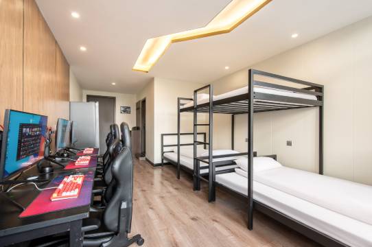 本店隶属于北京爱竞酒店管理有限公司,品牌围绕电竞生活,以酒店为依托,形成电竞酒店+赛事运营+新游戏研发+线上商城+游戏周边的电竞生活快乐空间。 酒店位于河南省焦作市武陟县龙泉街道文化路果品蔬菜交易市场1号。距离武陟汽车站步行约5分钟,距离武陟高铁站约7分钟,交通方便;酒店还为您提供入住欢迎茶水,洗漱化妆用品入住期间只需联系24小时前台,即可提供洗衣,烘干服务。周边提供停车,让您出行无忧。 酒店拥有电竞大床,双人间和多人间,满足电竞爱好者的各种需求。只为您提供一个舒适的游戏环境,客房摆放双开门大冰箱,零食饮料种类丰富,是您游戏之余补充能量的好选择。 进入酒店迎接您的是热情洋溢的笑容和花茶,入住酒店即可享受到前台24小时在线的管家式服务。酒店前台精心为您放置了丰富的客用品和医药箱,欢迎糖果、定制的打火机。我们一直注重细致入微的服务,致力于为客户提供更加优质的服务,为客人带来如"家"般的温暖。 我们致力于打造集快乐和舒适一体的入住体验,高端的电脑配置,专业的清洁,贴心的服务,让您不仅能体验竞技游戏中的快乐,更能感受到家的温馨,是您商务出差,朋友聚会的优先选择。