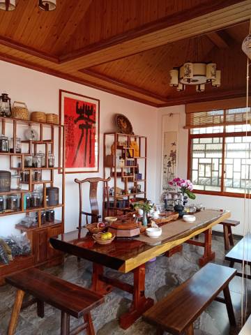 易武镇上走来看去对比了一下还真就这一家客栈比较有格调,建筑风格体现古风雅韵,实木家具呈现底蕴贵气。老板亲力亲为的打理使得客栈干净整洁,热情周到,舒适感满满,老板娘家自有茶树的普洱茶客人可以自取自泡品鉴易武普洱茶的甜柔清香与回甘,嗯,房好,人好,茶好,住着自然就觉得好!