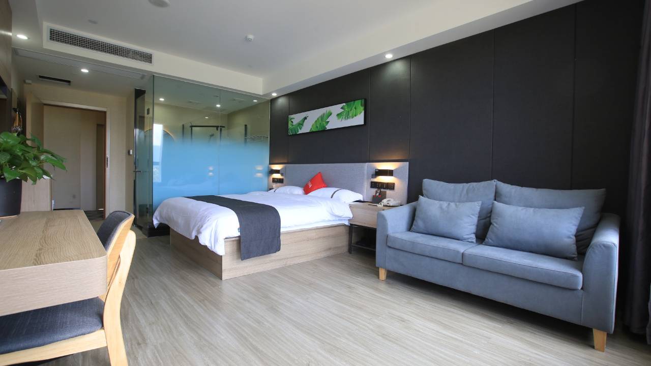 酒店内饰现代精致,客房采用温馨设计风格,舒适通透、宽敞洁净;拥有多款房型,房内配置空调、液晶电视、24小时热水、独立卫浴、高速宽带、wifi上网等设施。宾馆提供停车,24小时前台温情服务,是商务宾馆、休闲旅客温暖舒适的家。在一天的忙碌后,您可以在酒店尽情的享受各种体育和休闲设施。