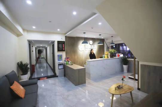 酒店装修风格为现代极简风格,简单干净、提升顾客舒适度,加上寓意深刻的壁画体现深层内涵。