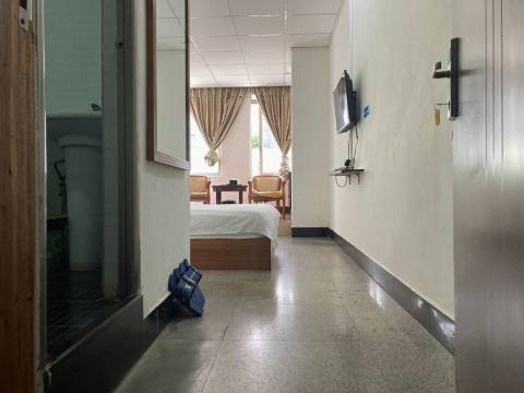 宾馆门店不是很大很小的房间里设施齐全,卫生干净整洁,房间没有异味,宾馆金靠着超市医院和农贸市场,购物交通都很方便