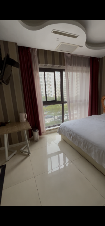 服务:服务很好,我本来定的时候只有圆床无窗户了,但当天晚上到了以后,前台说直接给你免费升级到有窗户的,哎呀,非常感谢呀~而是还是8808房间,这个数字好。