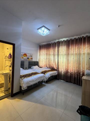 房间很大,装修的非常好,设施齐全干干净净,环境优美,离景区很近,方便游玩,老板娘母女待人热情。