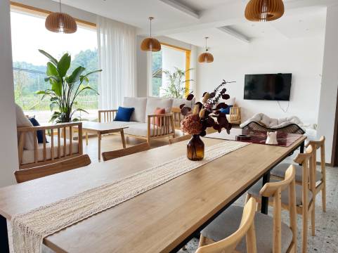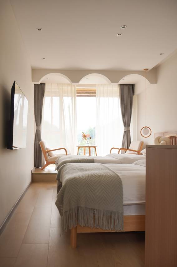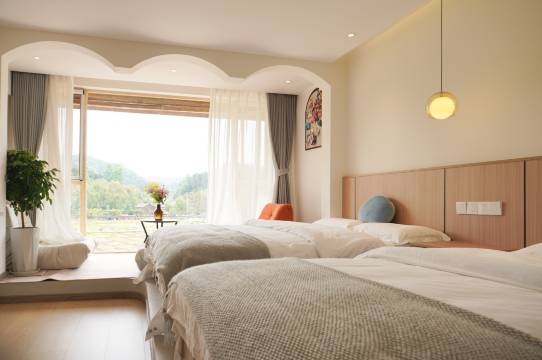 超大的落地窗,风景不错,有一次性的洗漱用品,老板人也很好,离古镇也很近哦,还可以带你去自家的茶园体验摘茶😊