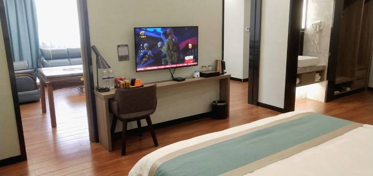 酒店地理位置非常好,前台的小姐姐很热情,服务态度非常好,房间装修也很不错,卫生做得很干净,阿姨也很热情,非常满意。我是来金秀跑马拉松的,因为定房晚了没有了房,只能定到桐木的酒店,酒店注明退房时间是12点,经过与前台小姐姐沟通,她很爽快的答应给我延长退房时间,感谢美女,也感恩遇见,祝生意兴隆