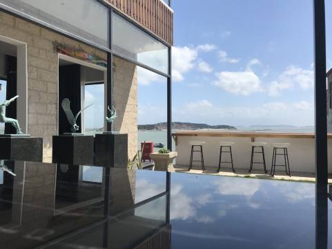 酒店位于平潭岛白青乡白沙村北部生态长廊海边,正面日出方向、观海高点位置,蓝眼泪季度在民宿内即可欣赏海浪卷起银河般璀璨的蓝眼泪,也可以步行约两分钟下至海边干净沙滩,同时可俯瞰当地特色石头厝村落及蓝色大海,远观当地原始码头,亦可采购新鲜海鲜,房屋大面积落地窗采光效果显著,隔音效果好,纵使海浪携风卷起波浪汹涌也可以坐在室内安静舒适地欣赏这般风景。民宿设计风格追求奢华时尚,拥有路线、旅拍、住宿等多元化旅游服务。