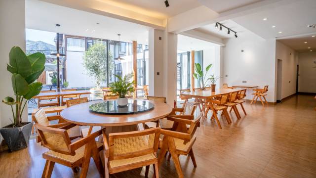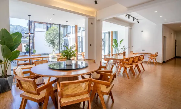民宿内设有餐厅、茶室、书屋、客房,是极简近现代的民宿。白墙青瓦,落地大窗,风格清新简约,每一间房间都有它特有的名称,每一间房也因地理优势和景致不同,各具特色;既有视野开阔的山景溪景房,也有双层复式庭院房,宽敞家庭套房,多种房型可供选择。民宿用品均按照酒店标准采购配置,无添加荧光剂的裸棉级布草,回归自然,共枕天地。