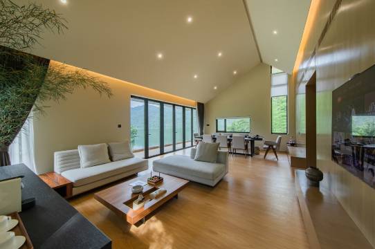 在严子陵钓台的河对岸,在钓台玩得时候就看到了他家的白色天幕,游船的时候广播里还介绍了严陵坞的开发。风景我觉得一流,临时给升级成了江景双卧套房,房型我也觉得很赞。房间的mini bar小零食很好吃,当天晚上就淘宝下单了。欢迎水果有草莓,这种放不起的水果比起其他很多五星酒店的苹果橘子梨要有诚意太多了。管家和各个工作人员都很热心,服务我也觉得很到位。这家是很适合度假的,进山的路比较难开,我是生手但是也开进去了,主打一个慢字,为了这个风景和环境我觉得是值得的。晚餐就是民宿直接订餐的,我觉得这个很明智,因为晚上我肯定开不出去也开不进来,而且菜也很可口。早餐有小馄饨不错,可以点。我唯一的困扰是虫(昆虫重度害怕者),家人对虫不屑一顾,唯独我一人煎熬了一整晚。不敢睡但是困到头昏只能埋在被窝里迷迷糊糊一晚。我确实很推荐这家的各方面,但是怕虫的话真的需要考虑能不能接受。