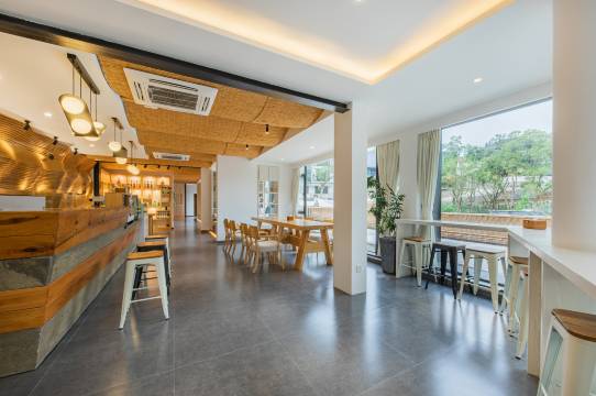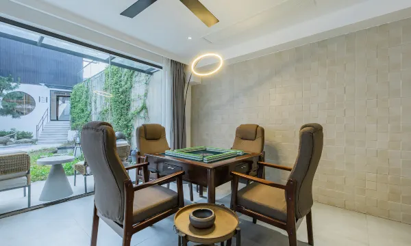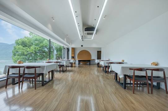 民宿空间疏朗有致,临江草坪可体验围炉煮茶,书吧的玻璃阳光房面朝江水,最惊喜的是夜晚,星空下伴着江风烧烤,隔岸严子陵钓台的灯光隐约可见,这份静谧与风雅,别处难寻。