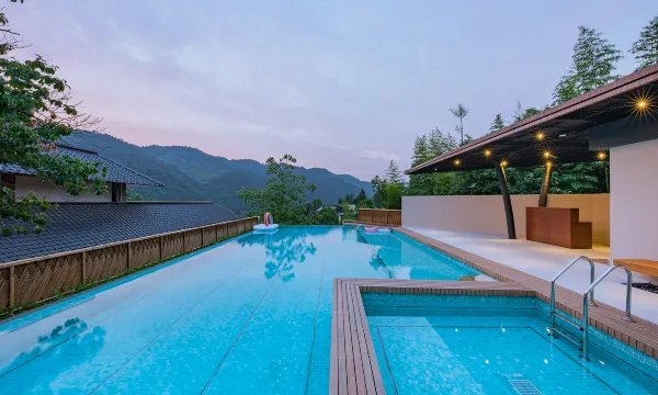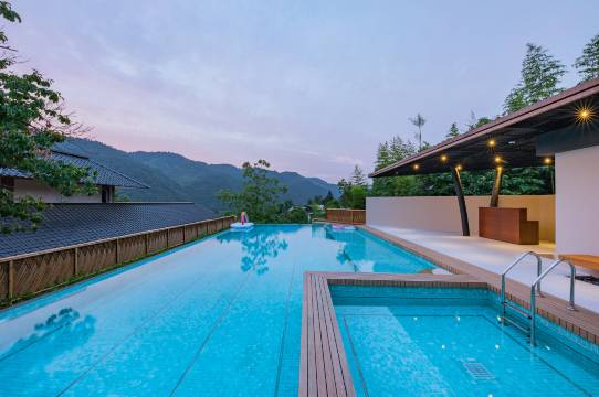 要推荐一下“千帆严陵坞”,它不是传统认知里由一栋民房做的民宿,而是一个村,和严子陵钓台隔江相望,进去的山路只能一车通过,弯道很多,会车时需要有一方的车辆退让到会车点。我们的房间是山居复式,村子里靠山的一栋,比较安静独立。🏠 旁边上山路有村民的鸡棚鸭棚,路上不是有闲逛的鸡就是有来逛逛的松鼠。露天游泳池有点隐秘,凭房卡开门。去吃饭如果懒得走,也可以请管家安排电瓶车接送。早饭的确如其它评论比较简单,吃饱是够的。晚餐需要以前一天预订,价格略贵,但味道还不错。这次天气不好,没能体验到民宿的各项户外活动,比较遗憾。