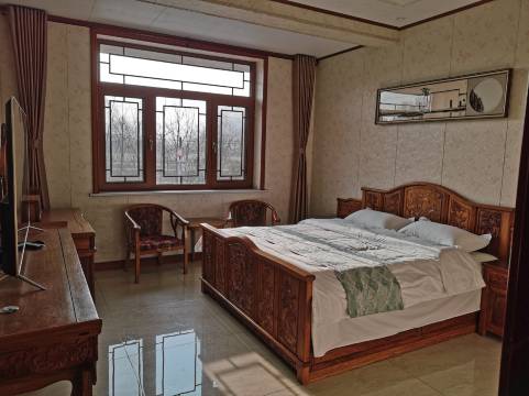 官式彩画庭院民宿 以“泽心道,惠君行”为魂,这座复刻清代官式彩画的秘境,将东方智慧凝于一庭一院。飞檐揽云,朱廊绘彩,七间厢房隐于黛瓦之下,古木家居泛着温润光泽,榫卯拔步床、云纹茶案静候知音——每一处细节皆藏“惠君”之道,以匠心滋养身心。 “泽心”以文脉润骨,“惠行”以诚心待客。于此,百年建筑肌理为衾,檐角铃铎伴梦,让时光慢作礼——赠您一夜清眠、满庭风月,半日闲情、半卷诗心。 民宿诚邀您,开启一场跨越时空的风雅修行。