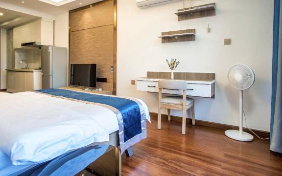 房间飘窗很长,视野很好,能一眼看到体育中心。房间配备的设施也很完善,卫生打扫方面可以叫保洁阿姨打扫,管家和阿姨的态度都很好。总体体验很不错的。
