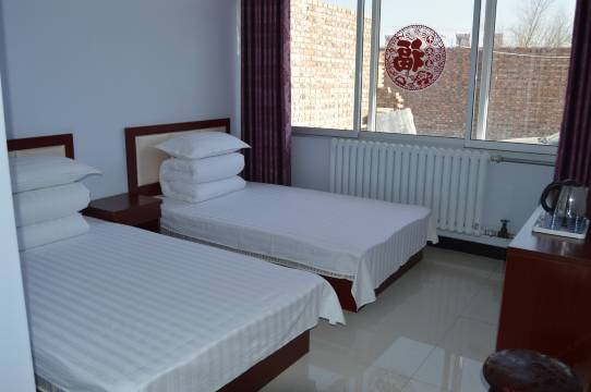客栈是在暖泉古镇内,订的是三人间,有三个单人床,卫生干净,屋内包括被褥都很干净,没有异味。民宿的管理者是位上了年纪的叔叔和阿姨,人特别热情,我们回家时叔叔给我们送到很远的路上,明年再到蔚县玩还会住这家客栈。
