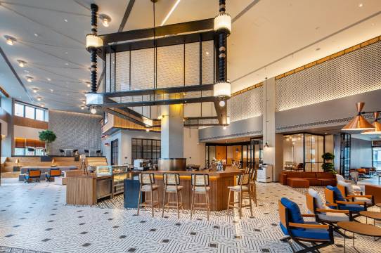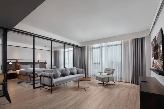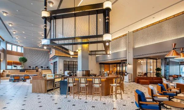 酒店地处大虹桥核心潜力发展区域——南虹桥,周边紧邻虹桥商务CBD中心、国家会展中心、新虹桥国际医学中心以及上海虹桥国际机场、上海虹桥火车站等交通核心枢纽。酒店有客房和服务公寓,一层开放式大堂“蜂箱”布局开阔新颖,采用同派标志性地空间处理手法,将前台、餐饮区、多功能吧台,共享办公区在此融为一体,营造复合型空间,颠覆传统酒店“泾渭分明”的区域划分。虹桥同派为长租客人提供24小时开放的专属共享生活空间,大客厅、洗衣房、共享厨房、会议室等设施一应俱全。作为同派在上海的旗舰酒店,虹桥同派将不仅为商务精英提供出行的便利,亦能填补南虹桥区域潮流生活方式的空白,成为凝聚周边社群和潮酷人士的新地标。