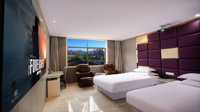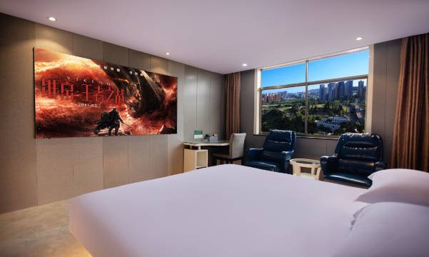 刚开始看了别人的评论有点担心,但到了那打开房门的瞬间惊呆了,空间很大,投屏的银幕,唯一不足的一点就是被子感觉有点潮湿,其他都很满意。出来吃的东西距离酒店也不远,距离景区也不远打个车也很便宜,总体来说还是比较满意的
