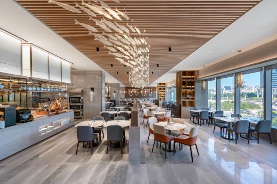 酒店位置好,就在崂山区政府对面,步行花神海,近眺石老人,还有歌剧院博物馆等公共建筑就在5分钟步行范围。酒店前台很热情,特别表扬和感谢Miranda,服务周到,热情体贴,不但为我们升级了房间,在我们早上青岛国际打高尔夫后,特别为我们做延期退房处理,及时帮助我们解决问题。酒店干净卫生,崭新高奢,内部外部具出色的现代设计感。早餐更是丰富高级。已经向亲戚朋友球友进行了推荐。