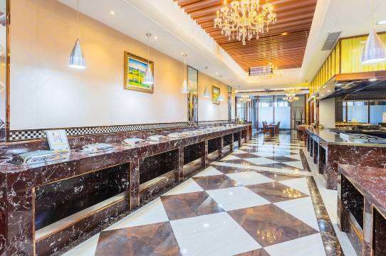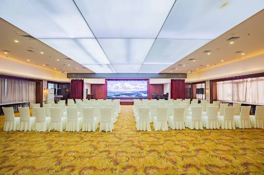 会议中心可接纳300多人,配有先进的影音、灯光系统,可满足200多人召开会议、进行培训之需。第二会议室、第三会议室分别接纳90人、40人。多功能宴会厅,建筑面积达800多平方米,可同时容纳500人就餐,可为各类宴席、酒会、文艺演出提供专业服务。还有彰显民族特色的自助餐厅以及风格各异的21间大包厢。宾馆以独具地方特色的菜系为主。
