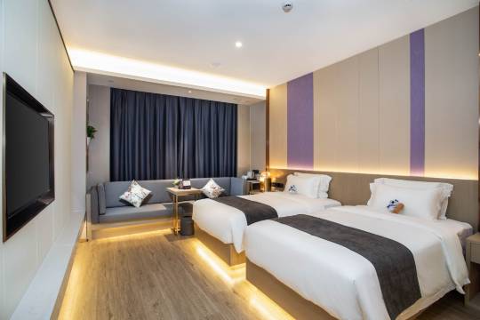 智能化程度很高的一家酒店,房间宽敞,设施都很新,该有的都有,位置有点偏,周围没什么店,但是价格非常低廉,办事的话还是很适合入住的,车位也很充足,前台服务很好,第二天退房,因为延迟退房没打招呼,阿姨还把我们房间打扫干净了,知道了以后一点都没抱怨,看我拿东西多很热情地帮我简化了退房流程,很好的体验,明年来办事还住这