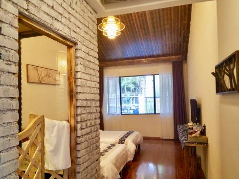 老板服务非常好,店内工作人员服务也非常到位,小木屋干净卫生,林中非常清雅,没有蚊虫。走的时候老板还特意送了一瓶自酿的酒,好评