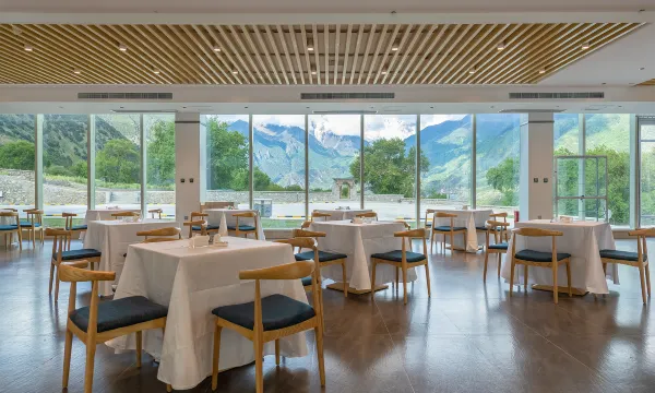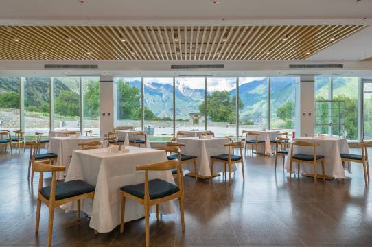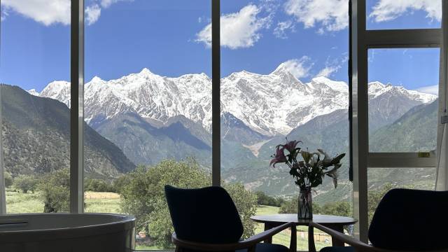 从踏进酒店大门的那一刻起,就被这家酒店的氛围打动了。窗外就是南迦巴瓦峰的雪山,房间推开窗,仿佛整座雪山都在眼前,震撼又宁静。