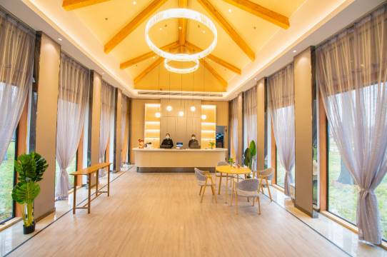服务很好,接驳车来得很快,是森林中的小木屋,落地窗真的太美了。吃饭在大堂二楼也比较方便,划算分量很大,有个章女士很细心,因为不吃辣帮忙给后厨提醒了很多次。