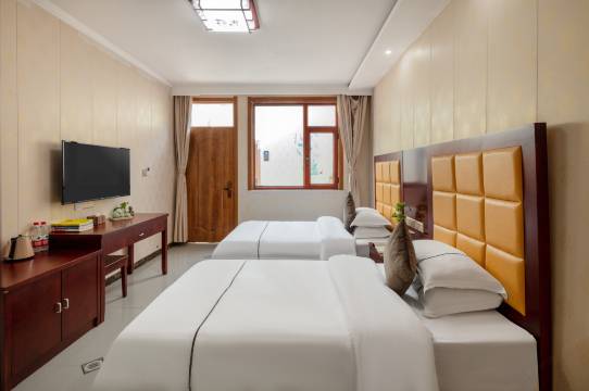 第二次入住了,这次是来五台山还愿的,老板给了很多宝贵意见。看的出来老板很用心在经营这个店,整体设施保护的非常好还是那么新,干净舒适,没有任何异味,有个大停车场停车很方便。门口还有个天然菩提洞,下次还会再来。