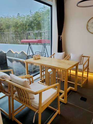民宿景观露台,设有室外茶桌椅,秋千,户外帐篷、可提供音乐,投影,烧烤BBQ等专业设施。