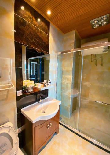 房间非常大,上下两层,很有感觉,洗漱物品也十分齐全,从二楼的窗户远眺,能看到远处的山,地理位置很好,距离富龙四季小镇很近,值得推荐。