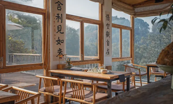 住店期间可以参与山觉阅读晨间早课、清晨探山野径、宋式点茶沙龙、古乐静心晚课,陶艺,香道沙龙及