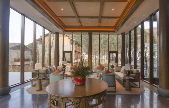牯牛降风景区的山系、水系成为酒店的一部分,踏上独木桥,步过潺流山溪,推栏入园,古树参天,壁山掩屋,曲径大堂,碧塘倒群山。酒店位于游客中心与景区入口之间,均摆度车随叫随到,酒店自有停车场。