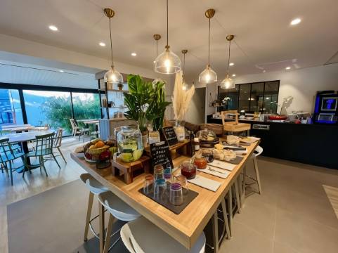 您可以到服务康帕尼勒自然酒店 - 奥兰治 住客的Le Restaurant享用美餐;也可以去小吃吧/熟食店逛逛。您可以到酒吧/酒廊,点一杯喜欢的饮品,畅饮一番。自助式早餐(收费)供应时间为:周一至周五 06:30 至 09:30,周末 07:00 至 10:00。