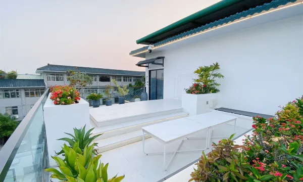 房间干净卫生,设施设备齐全,给入住带来了很多便利。庭院风景好,空气清新。有电梯。前台有自助的咖啡,罗汉果茶,单从茶