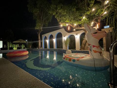 在民宿近千平米的户外花园中,配备有露天大泳池、公共泡池、桑拿房,专门的户外烧烤专区,满足多家庭休闲度假的需求,慢享有趣的户外欢乐时光。