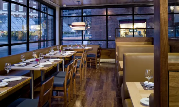 波士顿人酒店波士顿 坐落于波士顿中心地段,距离法尼尔集市仅咫尺之遥,步行到新英格兰水族馆也不超过 10 分钟。 此精品酒店距离波士顿公园 0.6 英里(0.9 公里),距离TD花园 0.6 英里(0.9 公里)。