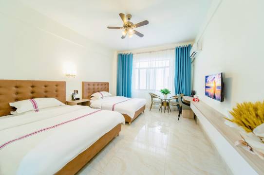 酒店前台服务非常贴心,工作人员热情周到,办理入住迅速,有专门的洗衣房,让客人感到温馨舒适,床铺舒适,环境很好,采光好!配有桌子。很安静。服务热情周到热情!而且离景区海边🏝️很近,出行也方便快捷,出差旅游的首选推荐[强]