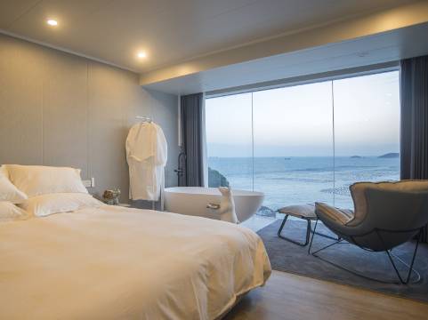 嵊泗御见海海景民宿位于美丽的舟山群岛之嵊山岛,是我国最东边的有人居住岛屿,民宿位置得天独厚,立于崖壁面朝大海,近邻东崖绝壁.灯塔.沙滩等著名打卡点,在房间内即可俯瞰海上牧场,观日落海景,看渔船往来穿梭,尽享海边浪漫休闲时光。