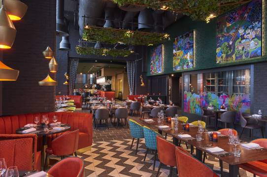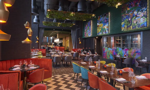 您可以去Chez Mal Brasserie餐厅享用美味佳肴,这里供应午餐和晚餐,主打英国菜。或者可以待在房间里,享受 24 小时送餐服务。在忙碌的一天后,不妨去酒吧/酒廊轻松一下。全套早餐(收费)供应时间为:周一至周五 07:00 至 10:00,周末 08:00 至 11:00。