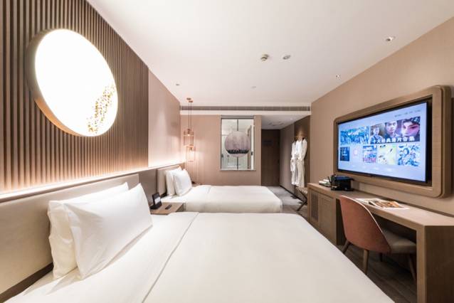 酒店位置很好,门口走几步就到地铁站,出行非常方便,酒店有个送东西的机器人,很有趣!房间电视听说是65寸的,感觉太棒了,房间有冰箱,里面的矿泉水和饮料都是免费的,房间设施齐全,打扫得很干净,服务员都很热情!下次再来住!