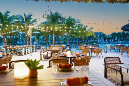 度假村设有 2 间餐厅,您可以选择到The Bay Kitchen简单吃一点,也可以待在房间里,享受 24 小时送餐服务。此外咖啡馆还供应美味点心。忙碌了一天后,可以去酒吧/酒廊或池畔酒吧小酌一番,轻松一下。每日 07:00 至 10:30 提供免费的自助早餐。