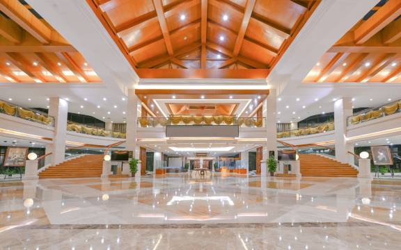 酒店占地约456亩,设有SPA温泉会所、花园别墅、娱乐活动、接待中心、温泉酒店客房区、会议中心、国宾馆、景观塔、行政中心九大功能区。