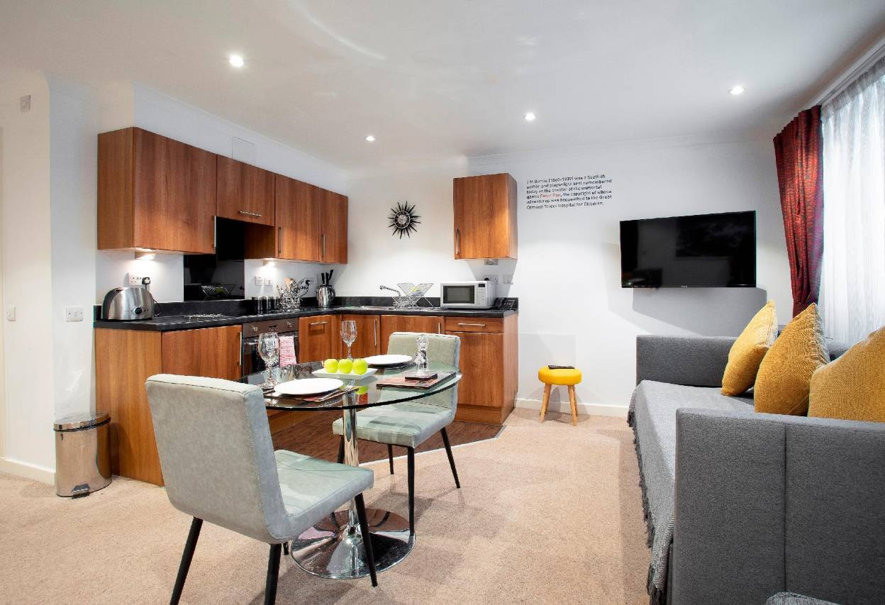 公寓离威火车站步行约20分钟。离王子街和爱丁堡非常近。公寓虽然需要自己办理入住。但是底楼有管理员,需要帮助可以直接去找。洗衣机冰箱面包机电炉都非常好用,冰箱有冷冻柜。打扫可以根据个人需要每日或者隔几日。