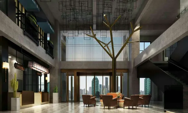 酒店是由江西鹰潭三川投资有限公司倾力打造的鹰潭一家以低调奢华,内敛优雅,简约复古情怀的人文精品商务酒店。大厅主要以复古现代化风格,几何立体的大厅顶灯、怀旧大众LOGO水果车、户外沙滩式的咖啡吧、大胆启用原色水泥立柱、随处可见的黑色铁艺架、优美的樱花式前台吊灯,任何一个装饰和色调的搭配都具有年代风味,配上蓝调的音乐大厅随便一个等候区都能感受到街角慢节奏的悠闲。