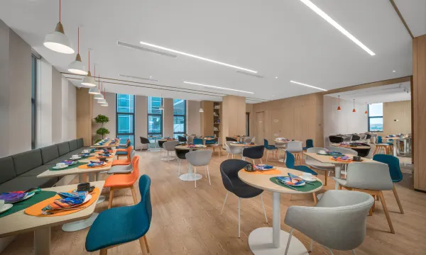 宾客在一层智空间可享受精致且富有活力的自助早餐、同时酒店为宾客提供午、晚餐零点及智能机器人客房送餐等服务,是每一位注重时效的商务和旅游人士提供的“睿智”选择。