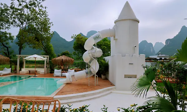 橘白致力于打造一个清新明朗、休闲娱乐的亲子度假酒店。橘白拥有十余间客房,12个独立房型,满足不同爱好需求。酒店有超1000㎡私家花园、热带雨林风餐厅、200寸巨幕投影、200㎡豪华聚会烧烤区,70㎡超大漫画书吧、5米入水城堡滑梯、成人儿童分区泳池等公共区域,让到来的客户享有独立的空间,又能看见喀斯特地貌山水景致,同时将休闲、浪漫、亲子、时尚等情怀融于整个酒店氛围中。
