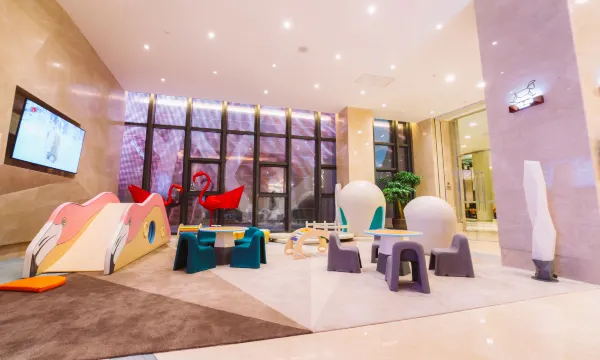 酒店把火烈鸟主题贯彻得淋漓尽致,一进大堂就被玻璃罩里的真火烈鸟惊艳到,孩子趴在窗边看了好久不肯走。我们订的亲子房更是惊喜,到处都是火烈鸟元素,房间宽敞又干净,儿童拖鞋、牙刷等备品一应俱全,细节特别贴心。