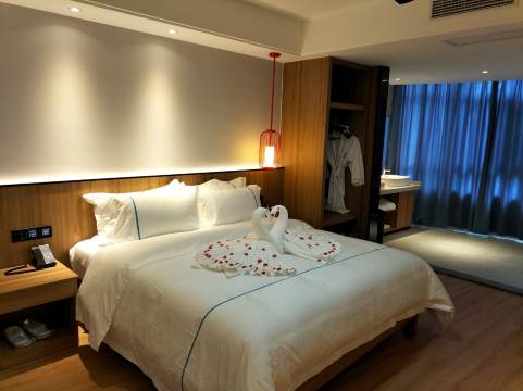 非常惊喜的一家酒店,外面看着旧一些,里面的屋子非常新,干净整洁。很多地方可以看到老板的用心和巧思:遮光窗帘,智能开关,配了消毒柜和小冰箱,亲子房的木制地板,很赞。下次来玩还住,祝老板生意越来越好