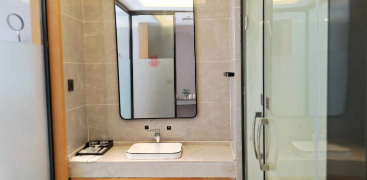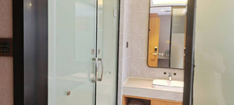 房间不错还挺大的,卫生干净整洁,浴巾消毒的,毛巾一次性的,房间隔音挺好,价格划算值得推荐