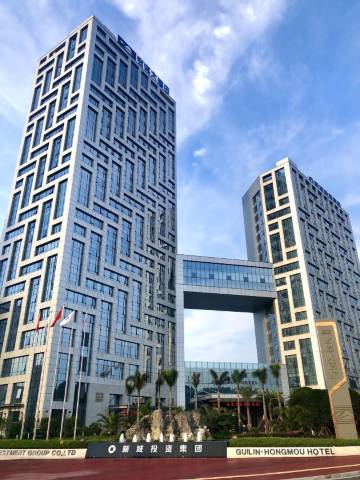 桂林宏谋大酒店位于桂林市临桂新区公园北路,是由桂林新城投资集团按照国际级标准投资建设的艺术主题特色酒店。酒店地理位置优越,紧邻山水公园、桂林一院两馆、吾悦广场、万达广场等休闲文化商业中心地带。 酒店设有雅居、行政景观、豪华商务等各式客房,零点、自助、商务、家宴等不同风格餐饮服务。酒店提供可满足800人用餐的餐饮场所,各种类型会议室、行政酒廊、多功能宴会厅等。酒店配备游泳池、干蒸房、健身房、美发室、商务中心、停车场等齐全的功能设施,可为宾客提供标准的酒店住宿、饮食、宴会、会议、康乐等一体化服务。 酒店以桂林山水艺术为主题,一千多幅著名画家的珍品真迹展示,以桂林传统的山水历史为题材,让客人移步换景,仿若身居山水艺术长廊,在酒店内就能感受到桂林山水之美。