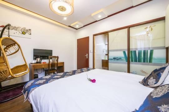 周庄水月轩客栈外观古韵别致,内部装饰清新雅致;客房舒适宽敞,将中国古典元素与现代居住理念想融合,布置以精美的水墨画作,韵味十足;设有多款房型,每款皆有优雅的名字,房内设施设备齐全,满足宾客日常生活所需。
