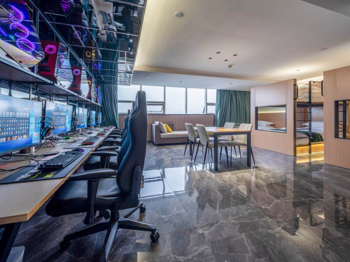 酒店有各类房间,全部配备英特尔十代I7-10700CPU,华硕玩家国度电竞主板,华硕玩家国度2080S电竞显卡,金士顿32G内存,32寸2K144赫兹电竞显示器,电竞水冷机箱,以及机械键盘、罗技电竞鼠标等外设,酒店旨在打造全温州高配置的电竞设施,让您拥有从未有过的极速、奢华的畅快体验!